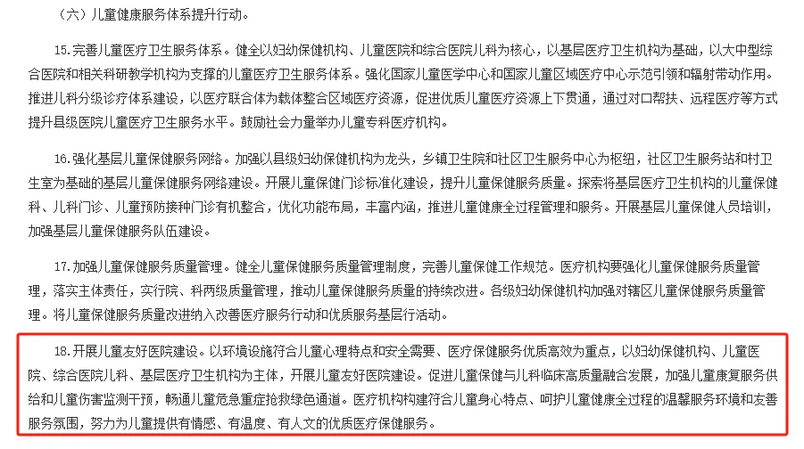 近年来,提升儿童就医体验、优化医疗环境已成为我国儿童医疗体系建设的关键任务。国家及地方层面围绕儿童医疗升级出台了多项政策,构建了从理念到实践的完整指引。